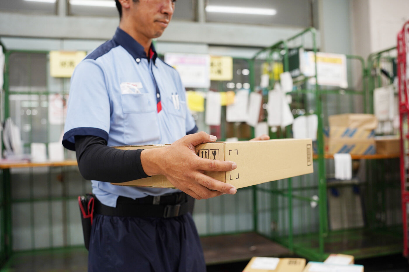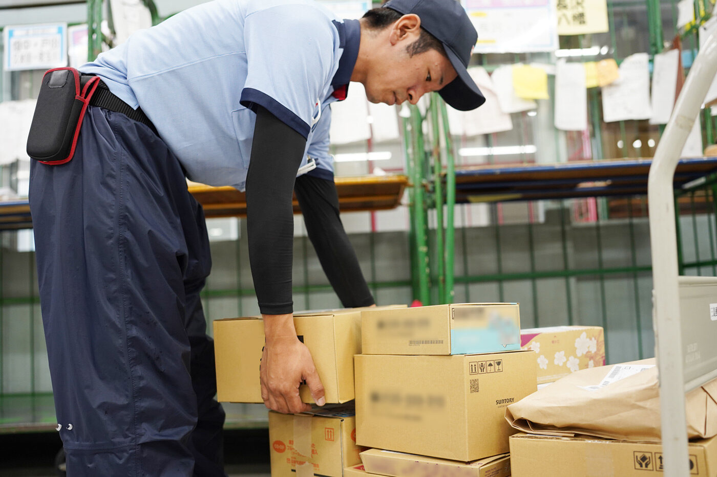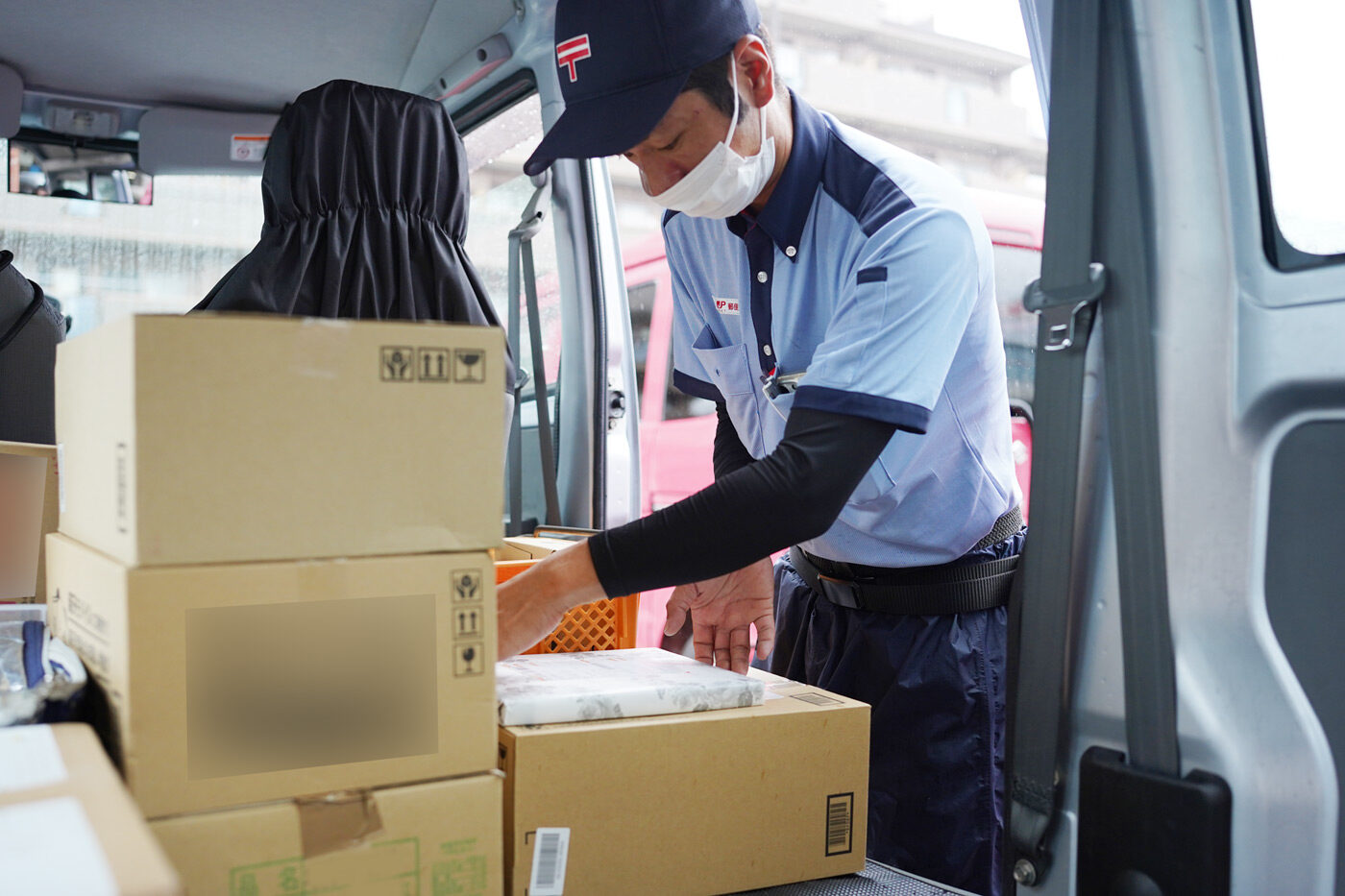 私たちは、日本郵政と提携し、荷物の仕分けから積み込み、そしてお届けまでを一貫して行っています。